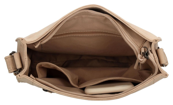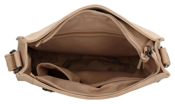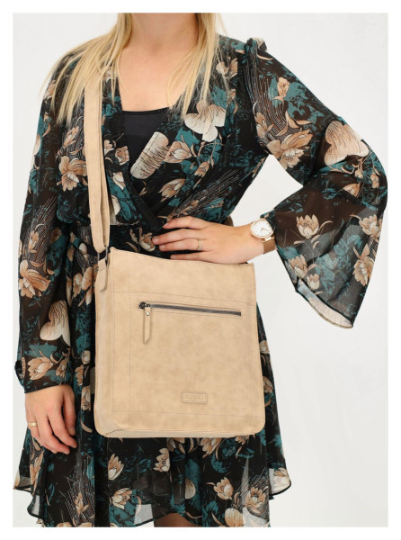Kabelka je vyrobena z kvalitní umělé kůže v univerzálním odstínu taupe, který se snadno kombinuje s jakýmkoli šatníkem. Její povrch je příjemný na dotek a zároveň odolný pro bezstarostné denní nošení. Celkový elegantní vzhled podtrhují decentní kovové detaily v moderní barvě gun metal. Díky nastavitelnému ramennímu popruhu si můžete kabelku přizpůsobit přesně podle sebe a nosit ji pohodlně přes rameno nebo ležérně jako crossbody.