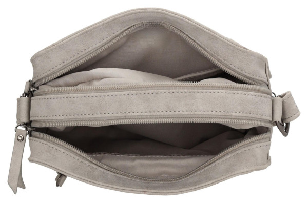 Kabelka je vyrobena z kvalitní imitace kůže, která je příjemná na dotek a snadno se udržuje. Její kompaktní, ale zároveň prostorný hranatý design vás překvapí. Dvě samostatné hlavní komory na zip a praktická přední kapsa zajistí, že všechny vaše nezbytnosti budou mít své místo a budete v nich mít vždy dokonalý přehled. Zapomeňte na chaotické přehrabování. Díky chytrému vnitřnímu uspořádání najdete klíče, telefon i peněženku během okamžiku. Pohodlí při nošení zaručuje nastavitelný ramenní popruh, který si snadno přizpůsobíte své postavě. Elegantní šedá barva a kovové detaily v odstínu gun metal dodávají kabelce punc moderní elegance.
