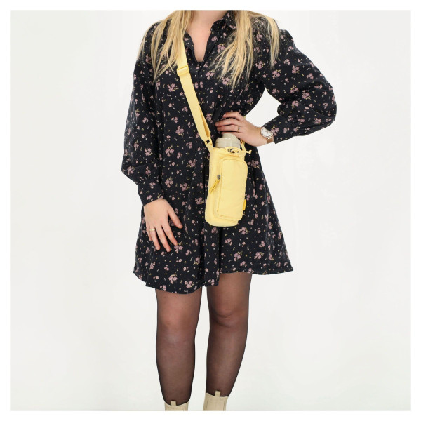 Tato dámská taška je vyrobena z odolné a lehké směsi nylonu a polyesteru, je tak připravena na všechny vaše venkovní aktivity. Její kompaktní, ale promyšlený design nabízí hlavní úložný prostor pro klíče, telefon a peněženku. Hlavním trumfem je však speciální termoizolační přihrádka, navržená přesně pro vaši lahev s pitím. Udrží váš nápoj chladný po delší dobu. Taška je ideální pro aktivní ženy, které hledají funkční a zároveň elegantní doplněk na túry, procházky se psem nebo jen tak do města.