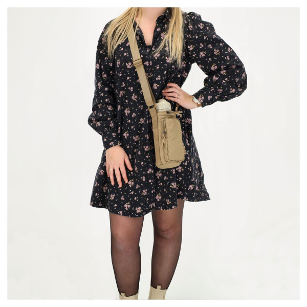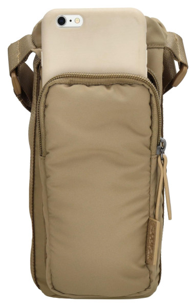 Tato dámská crossbody taška je vyrobena z odolné a lehké směsi nylonu a polyesteru, je tak ideální na procházky, turistiku nebo jen tak do města. Její kompaktní a stylový design v elegantní taupe barvě se skvěle hodí k jakémukoli outfitu. Díky tomuto chytrému řešení už nemusíte řešit, kam s lahví na pití a jak si zároveň ponechat volné ruce.