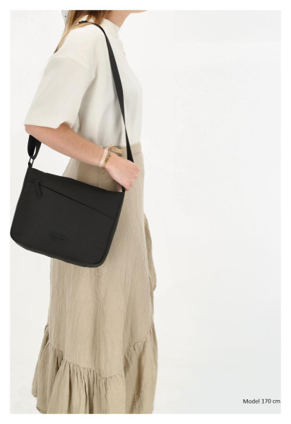 Pro věci, které potřebujete mít okamžitě k dispozici, skvěle poslouží samostatná přední a zadní kapsa na zip. Snadno nastavitelný ramenní popruh zaručuje maximální pohodlí, ať už tašku nosíte přes rameno nebo křížem přes tělo. Jednoduchý, ale nadčasový design v černé barvě se hodí ke každému outfitu.