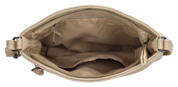 Elegantní taška přes rameno Beagles Ferro v barvě taupe je ideální pro každodenní nošení. Nabízí hlavní, přední i zadní kapsu na zip a nastavitelný popruh.