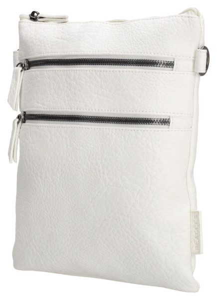 Beagles Langreo je elegantní bílá dámská kabelka přes rameno z imitace kůže. Ideální pro denní nošení s praktickými kapsami na zip.