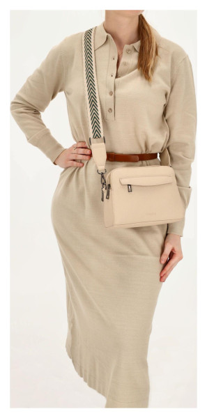 Tento model je stvořen pro ženu, která ocení spojení funkčnosti a moderního stylu. Neutrální béžový odstín se snadno kombinuje s jakýmkoli šatníkem, zatímco odnímatelný barevný popruh dodává celému vzhledu svěží a originální nádech. Popruh si můžete nastavit přesně podle svých potřeb pro maximální pohodlí při nošení přes rameno nebo jako crossbody. Je to doplněk, který podtrhne vaši osobnost.