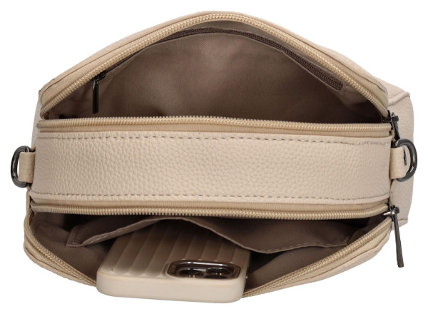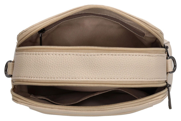 Kabelka je vyrobena z kvalitní a na dotek příjemné umělé kůže, která zaručuje dlouhou životnost a snadnou údržbu. Vnitřní prostor je chytře rozdělen do dvou hlavních oddílů uzavíratelných na zip, kam bezpečně uložíte všechny své nezbytnosti. Pro lepší organizaci a rychlý přístup k drobnostem, jako jsou klíče nebo telefon, skvěle poslouží praktická zadní i vnitřní kapsička na zip. Vše budete mít přehledně uspořádané a vždy po ruce.
