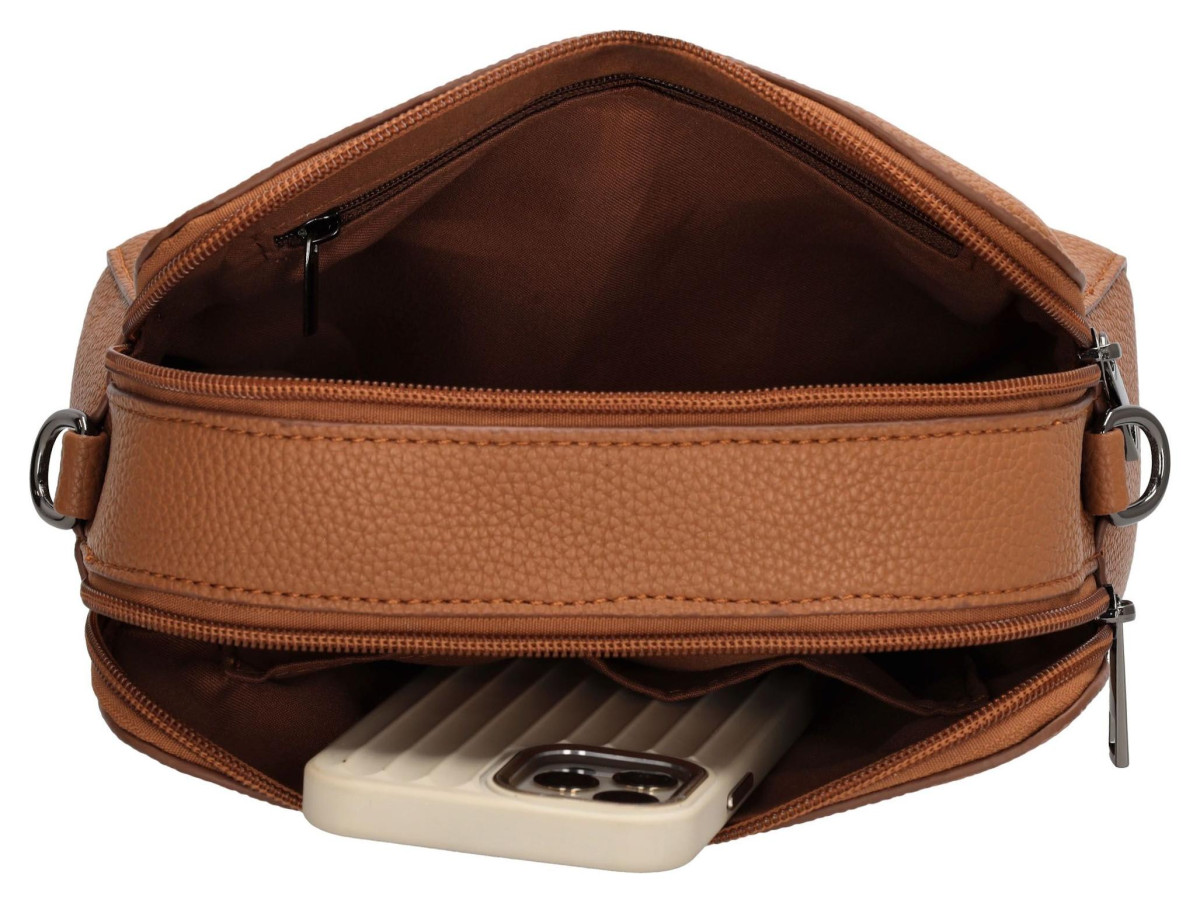 Tato stylová kabelka Beagles Las Palmas v barvě koňak je ideální pro každodenní použití díky svému univerzálnímu designu a barevnému popruhu. Nabízí dvě hlavní přihrádky na zip.