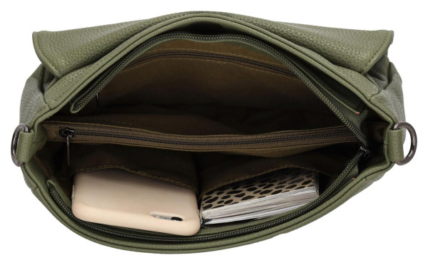 Chytře řešený vnitřní prostor s několika kapsami vám usnadní organizaci všeho, co potřebujete. Hlavní oddíl je rozdělen praktickou zipovou přepážkou a doplňují ho menší kapsičky na drobnosti. Další úložný prostor najdete v samostatných kapsách na zip na přední i zadní straně kabelky, kam bezpečně schováte klíče nebo telefon.