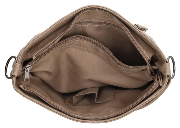 Kabelka je vyrobena z kvalitní imitace kůže, která je příjemná na dotek a zároveň odolná pro každodenní nošení. Hlavní devizou je její skvělá organizace. Prostorná hlavní komora je doplněna o samostatné přední a zadní kapsy na zip, díky nimž budete mít ve svých věcech vždy dokonalý přehled. Klíče, telefon i peněženku najdete okamžitě, bez zdlouhavého hledání. Všechny vaše nezbytnosti budou bezpečně uloženy a vždy po ruce.