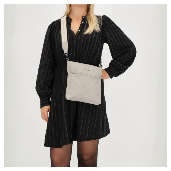Beagles Malaga je elegantní šedá kabelka přes rameno s nastavitelným popruhem a praktickými kapsami na zip.