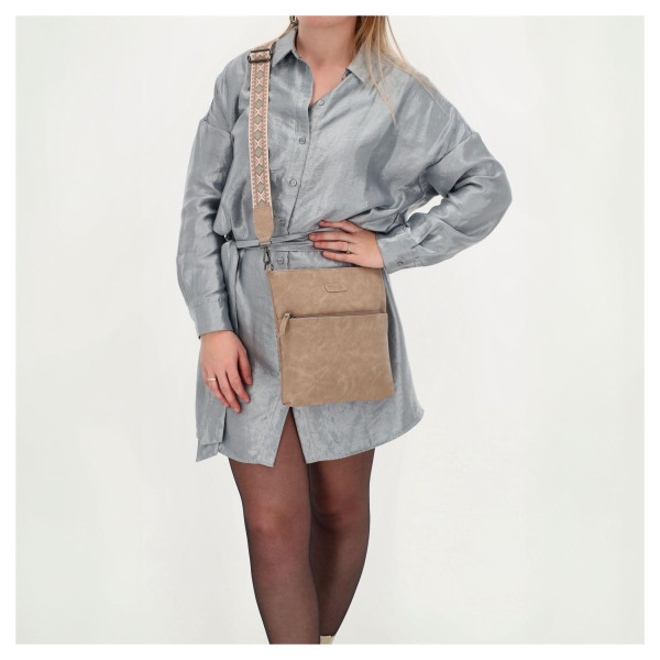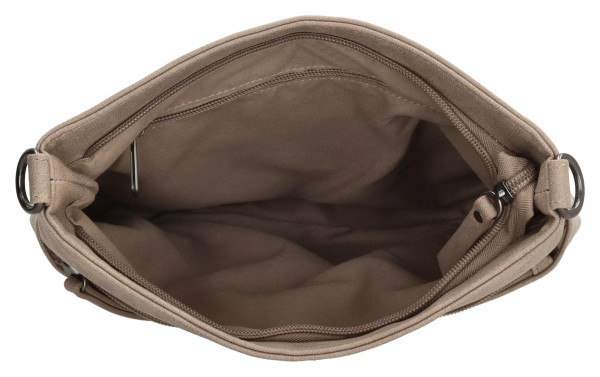 Stylová dámská taška přes rameno Beagles Malaga v taupe barvě. Ideální pro denní nošení, nabízí hlavní, přední i zadní kapsu na zip a nastavitelný popruh.
