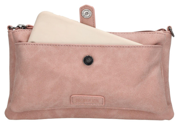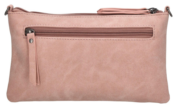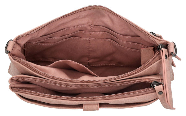 Elegantní růžová kabelka Beagles Malaga s mnoha přihrádkami a prostorem pro šest karet. Ideální pro večerní akce, doplněna barevným ramenním popruhem.