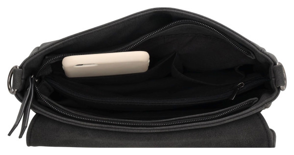 Elegantní dámská kabelka Beagles Malaga 22139 Black nabízí hlavní a zadní zipovou kapsu, telefonní přihrádku a barevný nastavitelný popruh.