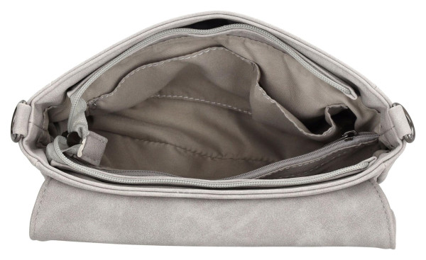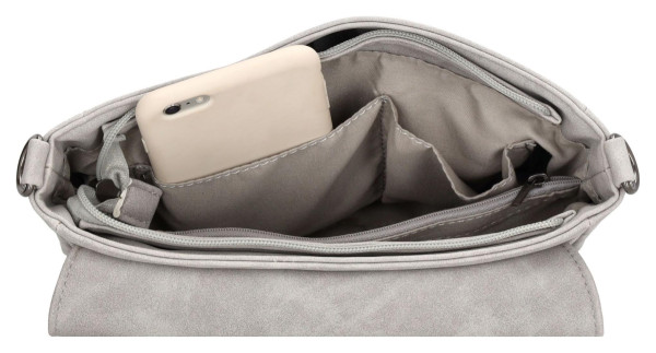Elegantní šedá kabelka Beagles Malaga z imitace kůže je praktickým doplňkem. Nabízí hlavní i zadní kapsu na zip, přihrádku na telefon a nastavitelný popruh.