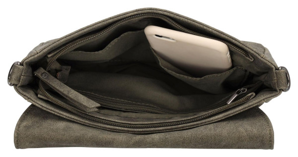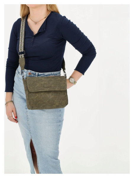 Elegantní dámská kabelka Beagles Malaga v olivově zelené barvě s nastavitelným popruhem. Nabízí hlavní i zadní kapsu na zip a vnitřní kapsu na telefon.