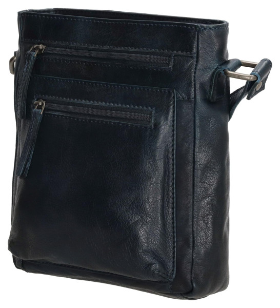 Beagles Maspalomas je stylová modrá kožená crossbody taška s nastavitelným popruhem a několika kapsami na zip pro vaše nezbytnosti.