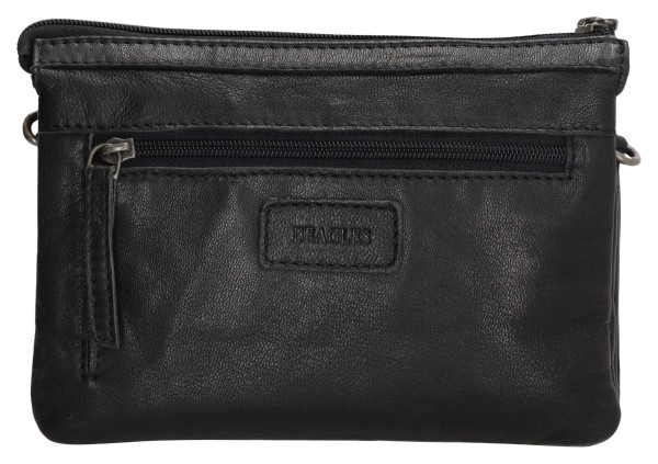 Tato stylová černá taška přes rameno Beagles Maspalomas je vyrobena z kůže. Má hlavní a přední kapsu na zip, nastavitelný popruh a odnímatelné poutko na zápěstí.