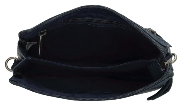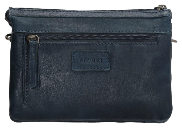 Stylová taška Beagles Maspalomas v tmavě modré barvě s hlavním a předním zipovým oddílem. Lze ji nosit přes rameno nebo na zápěstí díky odnímatelným popruhům.