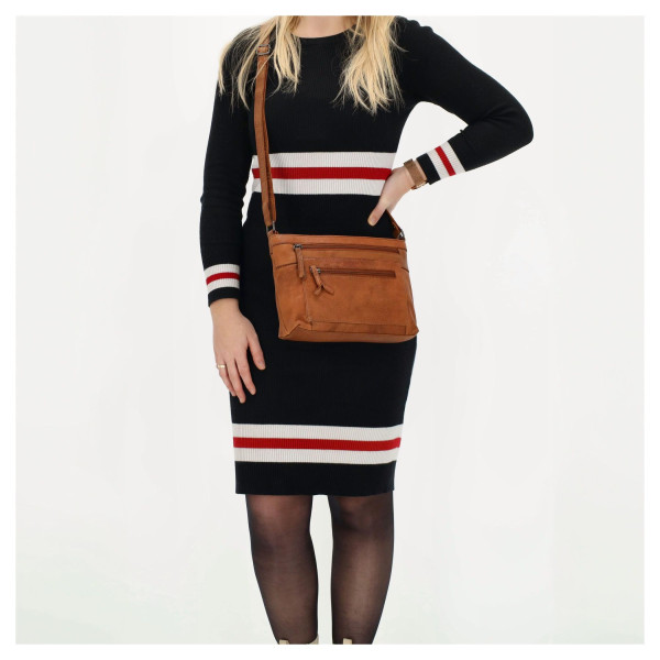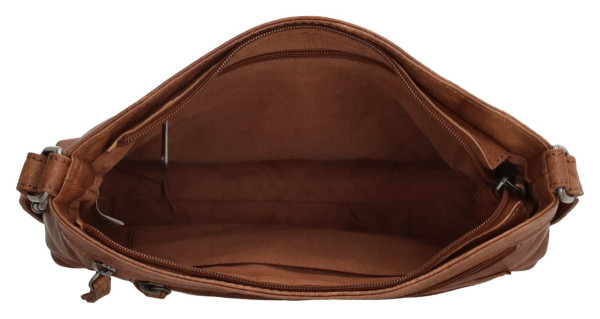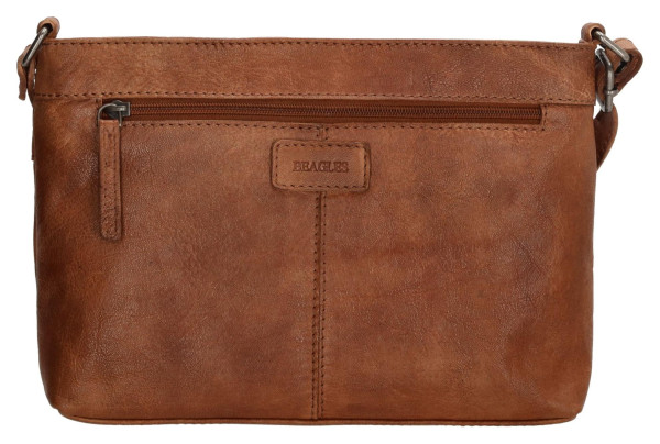 Elegantní kožená taška přes rameno Beagles Maspalomas v barvě koňaku. Nabízí hlavní kapsu na zip, přední a zadní kapsu a nastavitelný popruh pro každodenní nošení.