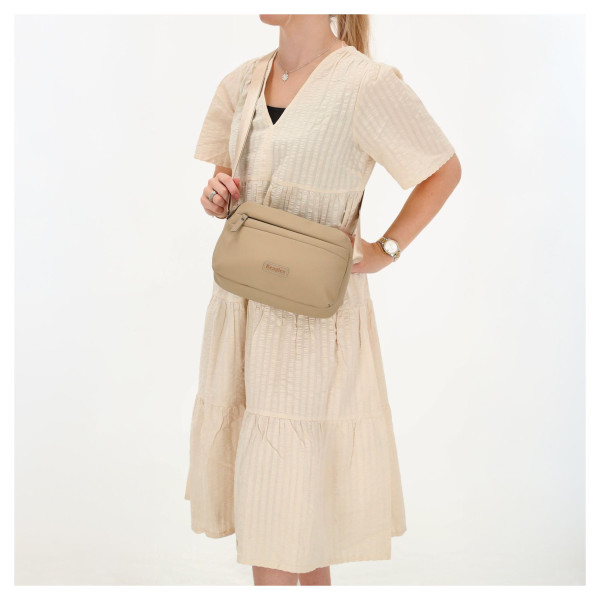 Beagles Nara je stylová a funkční taška přes rameno z voděodolného materiálu. Nabízí praktické zipové kapsy a nastavitelný popruh pro vaše pohodlí.