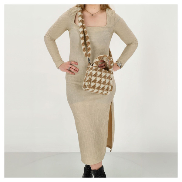 Roztomilá kabelka Beagles Navarra s teddy látkou a béžovým houndstooth vzorem dodá vašemu outfitu útulný vzhled. Díky kompaktnímu rozměru je ideální pro vaše nezbytnosti.