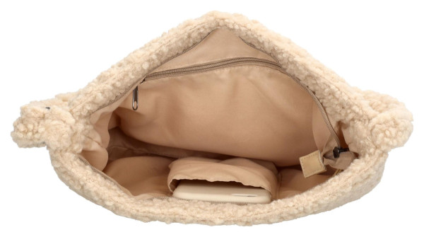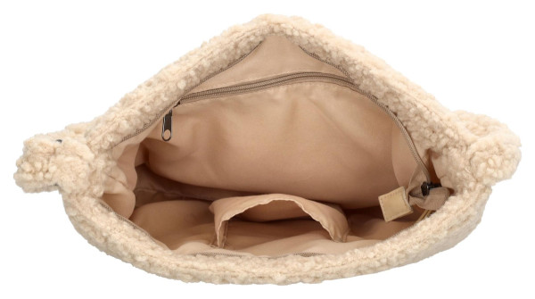 Trendy taška přes rameno Beagles Navarra Cream z měkké teddy látky. Má prostornou hlavní kapsu na zip a nastavitelný popruh pro pohodlí.