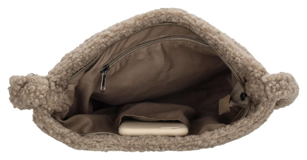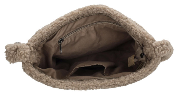 Objevte stylovou tašku přes rameno Beagles Navarra v barvě Taupe, ideální pro chladné měsíce díky měkké teddy látce. Nabízí prostornou hlavní kapsu na zip a nastavitelný popruh.