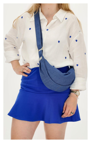 Materiál z odolného bavlněného plátna věrně imituje oblíbený denim, je příjemný na dotek a zároveň odolný pro každodenní nošení. Díky nastavitelnému ramennímu popruhu si kabelku snadno přizpůsobíte pro maximální pohodlí, ať už ji nosíte přes rameno nebo křížem přes tělo. Chytré uspořádání kapes na zip vám umožní mít ve věcech dokonalý přehled a bezpečně uložit telefon, klíče i peněženku. Elegantní kovové doplňky ve starožitně zlaté barvě dodávají celkovému ležérnímu vzhledu punc jedinečnosti.