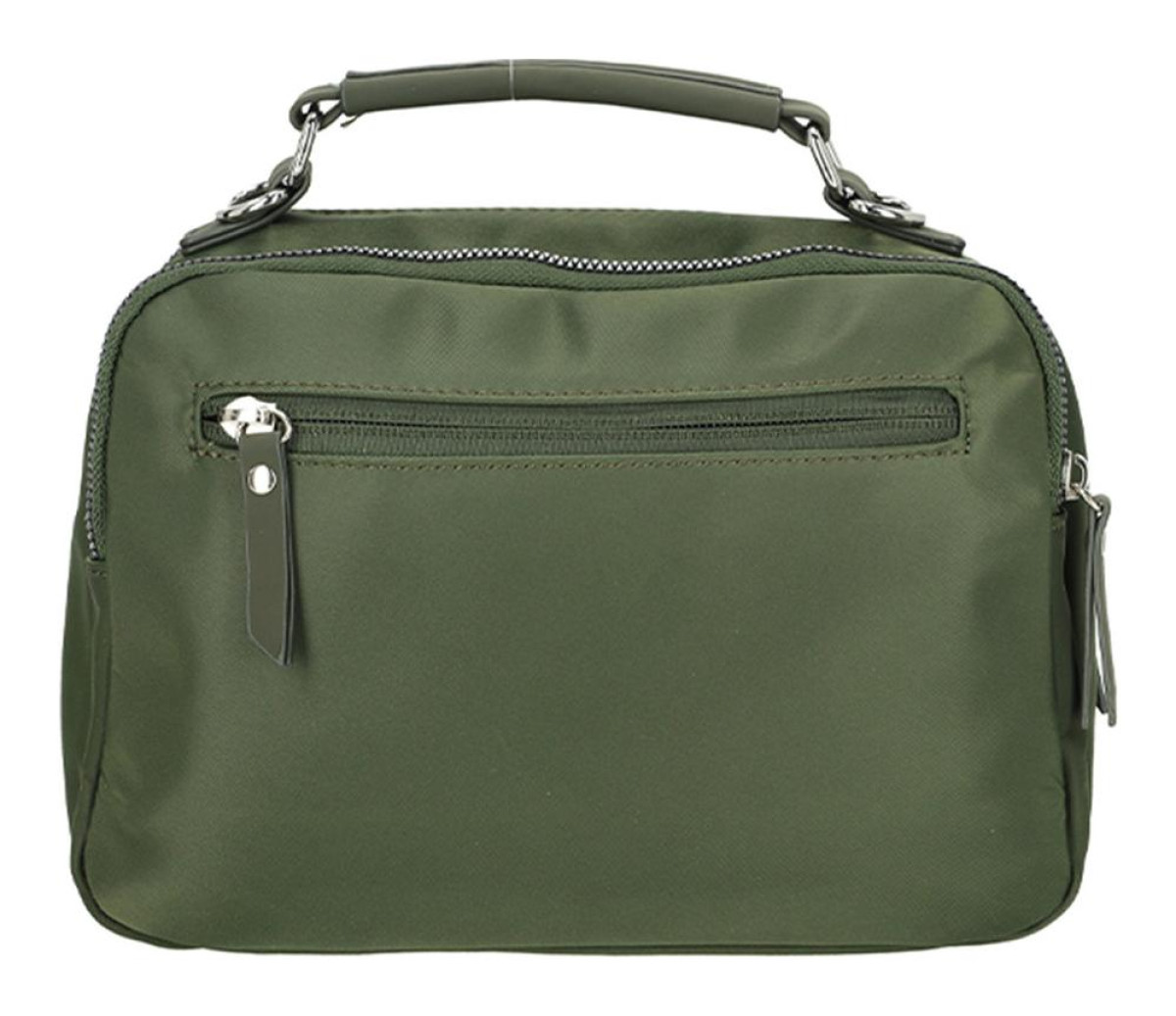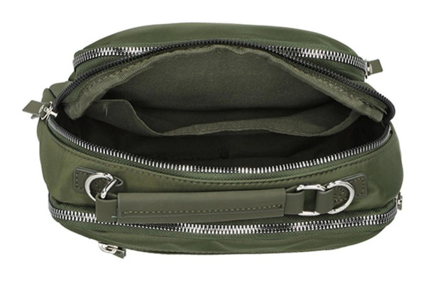 Praktická crossbody taška Enrico Benetti Caroline v olivové barvě. Je vyrobena z odolného nylonu/polyesteru a má rozměry 23x8x16 cm.