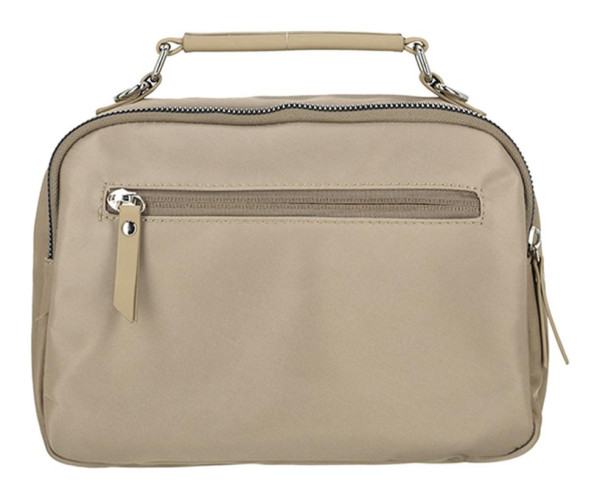 Kabelka je vyrobena z odolné a zároveň velmi lehké kombinace nylonu a polyesteru, je tak připravena na nástrahy každodenního nošení a snadno se udržuje. Její minimalistický design v elegantním pískovém odstínu se hodí ke každému outfitu. Díky kompaktní velikosti vás nebude nijak zatěžovat, přesto nabízí chytře řešený vnitřní prostor, který pojme všechny vaše nezbytnosti.