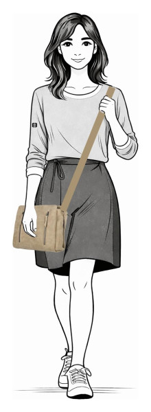 Promyšlená velikost nabízí dostatek prostoru pro telefon, peněženku, klíče a další drobnosti, aniž by taška působila zbytečně objemně. Nastavitelný popruh zaručuje maximální pohodlí při nošení přes rameno nebo křížem přes tělo. Užívejte si svobodu pohybu a jistotu, že máte vše důležité přehledně uspořádané a vždy po ruce.