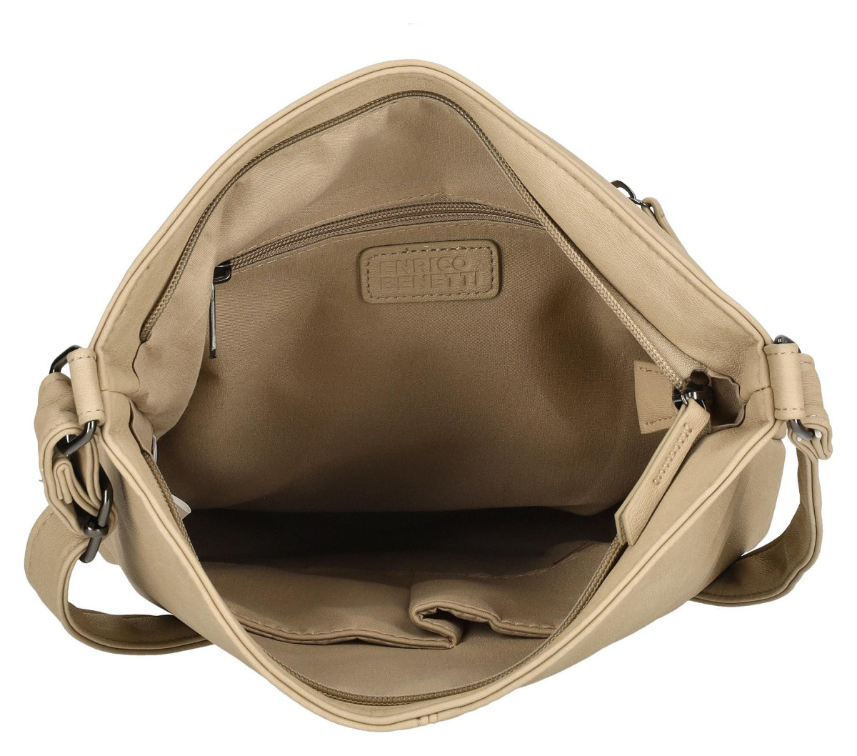 Stylová crossbody taška Enrico Benetti Roza v barvě taupe, ideální pro každodenní nošení. Vyrobena z odolného PU materiálu, s rozměry 30x9x31 cm.