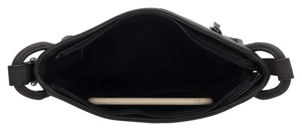 Hlavní prostor se bezpečně uzavírá na zip, chrání tak vše cenné. Uvnitř naleznete praktickou zipovou kapsičku a speciální přihrádku na telefon, které vám pomohou udržet dokonalý pořádek. Pro věci, které potřebujete mít okamžitě k dispozici, skvěle poslouží další kapsa na zip umístěná na zadní straně kabelky. Vše má své jasně dané místo.