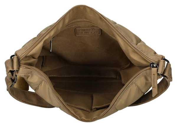 Elegantní dámská crossbody taška Enrico Benetti Demi v barvě taupe. Je vyrobena z odolného nylonu/polyesteru a má rozměry 28x9x20 cm.