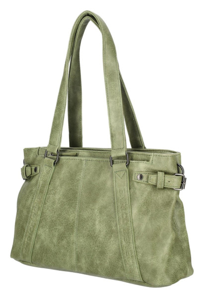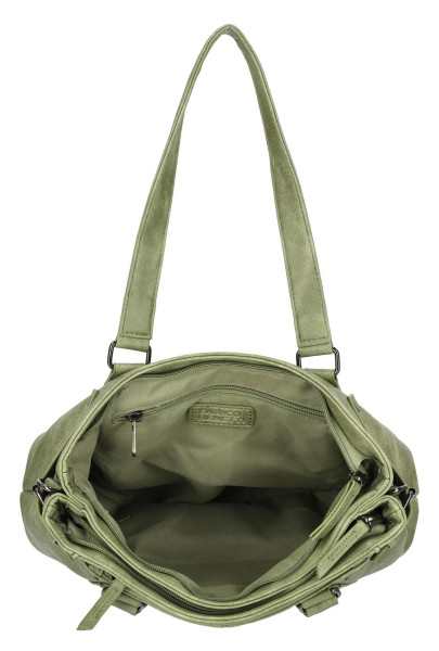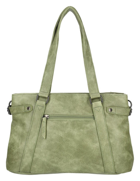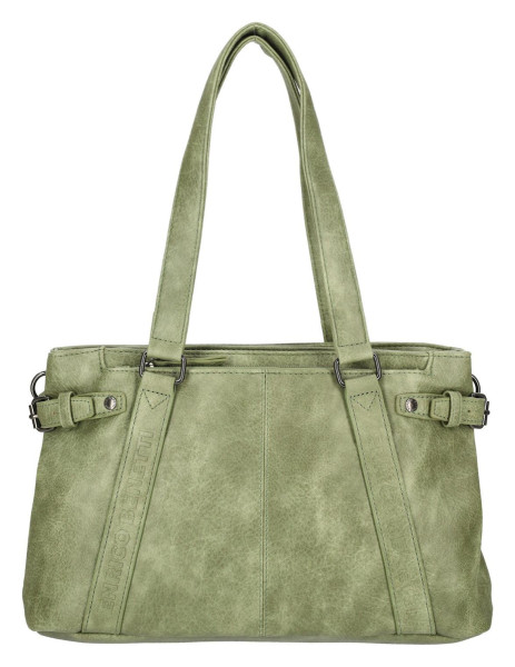 Stylová taška přes rameno Enrico Benetti Emma z klasické PU kůže v mechově zelené barvě. Nabízí dvě hlavní přihrádky na zip a odnímatelný popruh pro pohodlné nošení.