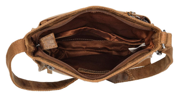Kožená taška přes rameno Enrico Benetti Genua v barvě camel. S rozměry 20x8x21 cm je ideální pro vaše nezbytnosti.