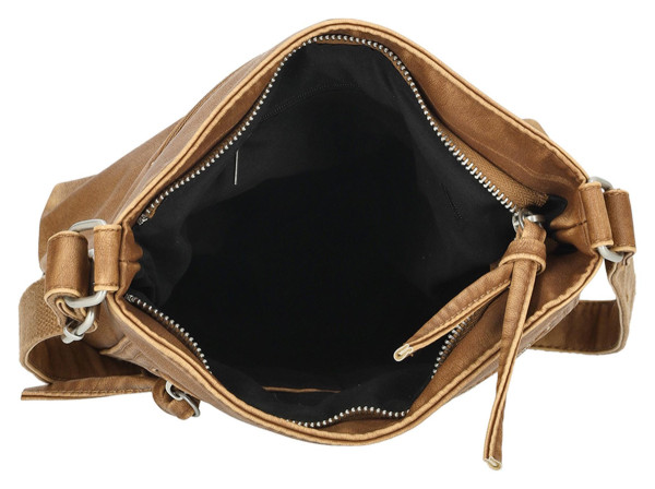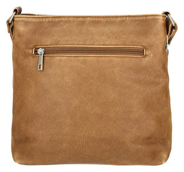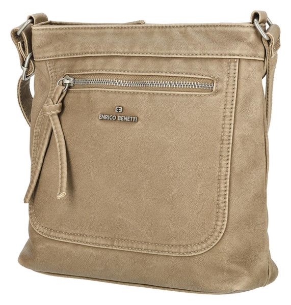 Stylová crossbody kabelka Enrico Benetti Harper v barvě Camel, ideální pro každodenní nošení. Je vyrobena z odolného PU materiálu a má rozměry 24x8x25 cm.