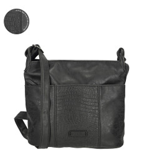 Stylová crossbody kabelka Enrico Benetti Josie v černé barvě, ideální pro každodenní nošení. Vyrobena z odolného PU materiálu s rozměry 28x11x25 cm.