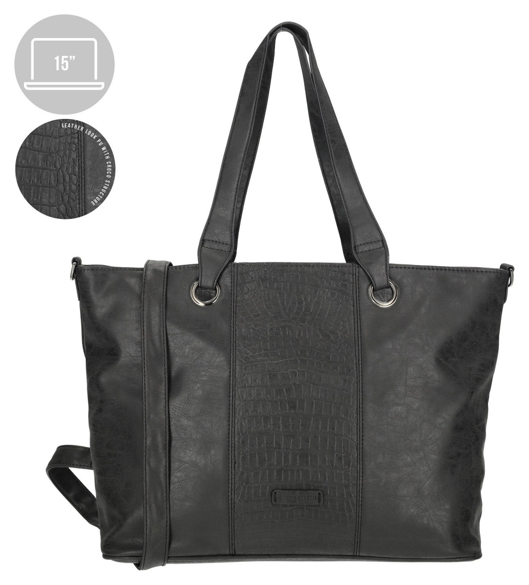 Objevte dokonalou souhru elegance a funkčnosti s dámskou taškou Enrico Benetti Josie. Tento stylový shopper je navržen pro moderní ženu, která se nechce rozhodovat mezi profesionálním vzhledem a praktičností. Nabízí velkorysý prostor pro všechny vaše pracovní i osobní nezbytnosti a zároveň spolehlivě ochrání vaši techniku. Je to ideální partnerka do kanceláře, na pracovní schůzky i jen tak do města.