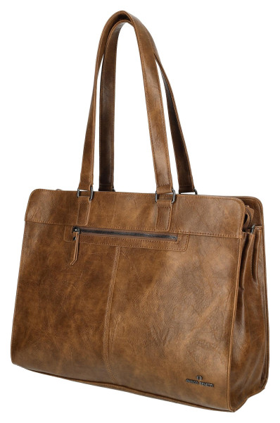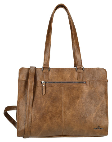 Stylová Enrico Benetti Julia taška přes rameno v koňakové barvě pro 15palcový notebook. Je vyrobena z PU materiálu a má rozměry 40x14x32 cm.