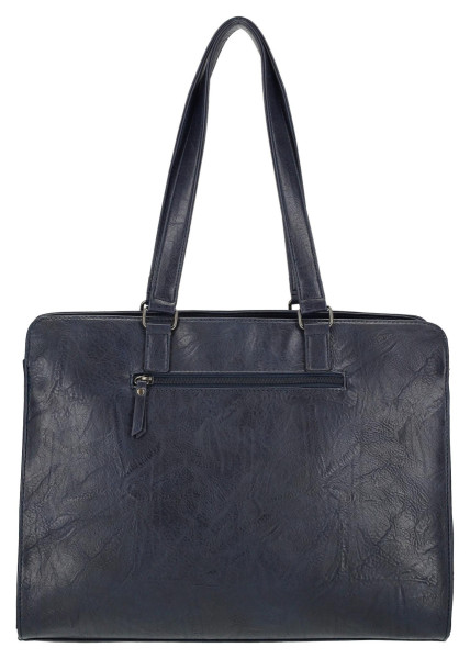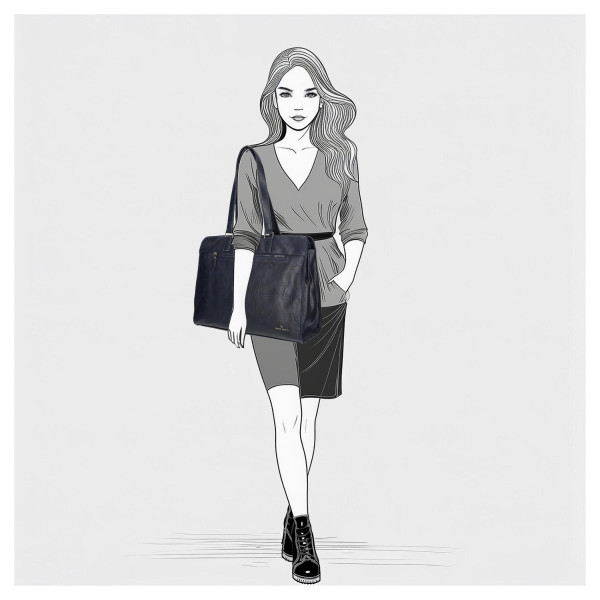 Taška vás na první pohled zaujme svým čistým, minimalistickým designem a nadčasovou tmavě modrou barvou, která se snadno kombinuje s jakýmkoli outfitem. Je vyrobena z kvalitní a odolné umělé kůže, příjemné na dotek a zároveň nenáročné na údržbu. Uvnitř se skrývá promyšlený prostor, kde má vše své místo. Samostatná polstrovaná přihrádka je připravena pro váš notebook, zatímco prostorný hlavní oddíl pojme dokumenty, diář i osobní věci. Pohodlná ucha zajišťují komfortní nošení v ruce i přes rameno po celý den.