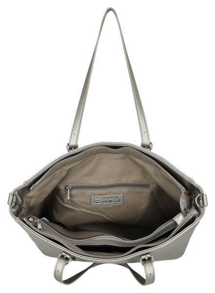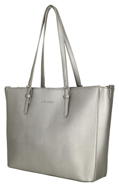 Elegantní shopper taška Enrico Benetti Nina v tmavě stříbrné barvě, ideální pro notebook 17 palců. Je vyrobena z odolného PU materiálu.