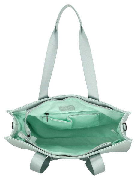 Taška vás na první pohled zaujme svým čistým, minimalistickým designem a svěžím mátovým odstínem. Je vyrobena z kvalitní a na dotek příjemné umělé kůže, která je nejen odolná pro každodenní nošení, ale také se snadno udržuje. Díky svému univerzálnímu vzhledu se skvěle hodí k elegantnímu kostýmku i ležérním džínům a oživí každý váš outfit.