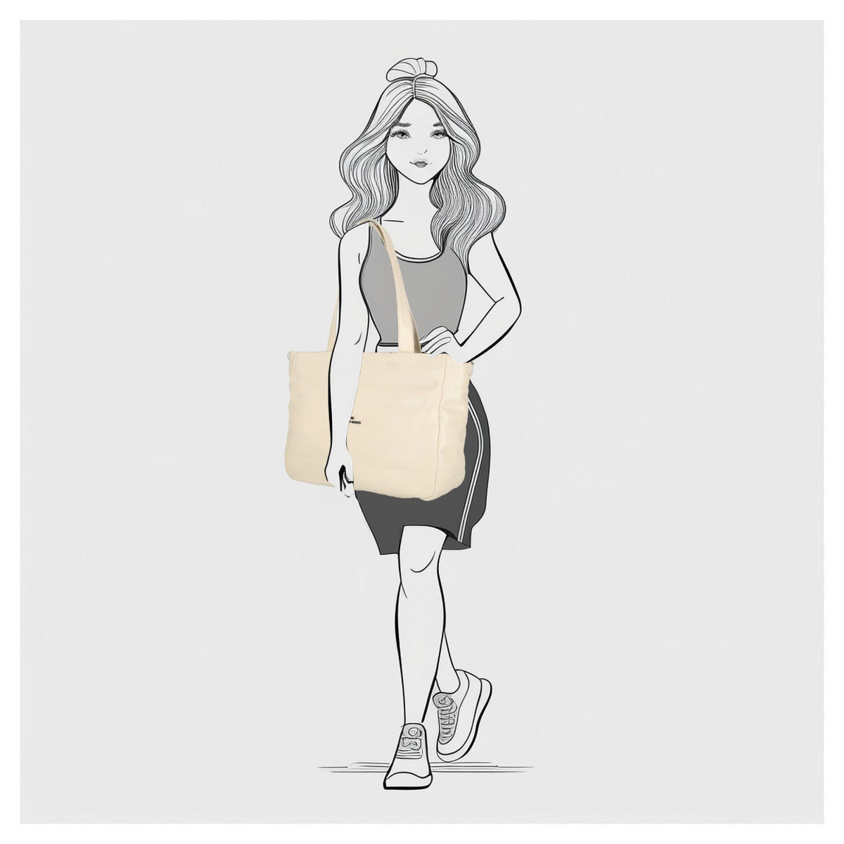 Její skutečná síla se však ukrývá uvnitř. Velkorysý hlavní prostor bezpečně uzavíratelný na zip pojme vše, co během dne potřebujete – od dokumentů a notebooku až po menší nákup. Dvě dostatečně dlouhá a pevná ucha zajišťují maximální pohodlí při nošení přes rameno, i když je taška plně naložená. Stane se tak vaší nepostradatelnou parťačkou pro každý den.