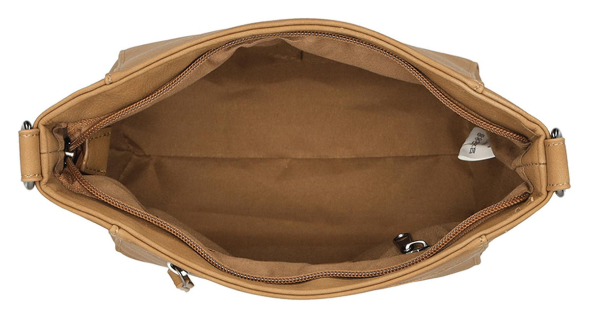 Kabelka je vyrobena z kvalitní umělé kůže, která jí propůjčuje luxusní vzhled a zároveň zaručuje vysokou odolnost a velmi snadnou údržbu. Díky promyšlenému designu s několika kapsami na zip budete mít ve svých věcech vždy dokonalý pořádek. Hlavní komora bezpečně uschová peněženku i diář, zatímco menší kapsy jsou ideální pro rychlý přístup k telefonu či klíčům.