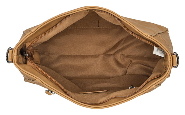 Elegantní crossbody taška Enrico Benetti Roxy v barvě camel je vyrobena z PU a má rozměry 29x9x23 cm.