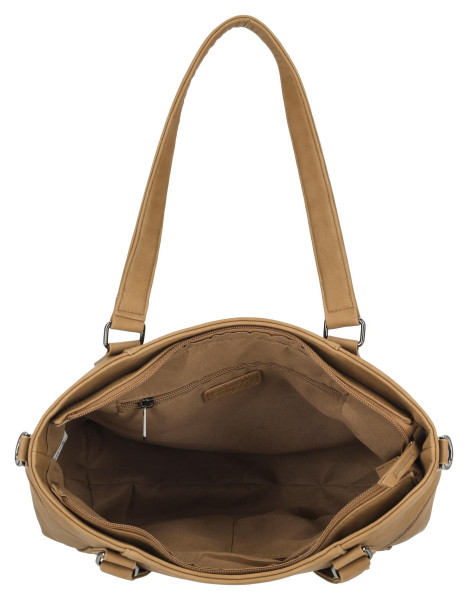 Kabelka je vyrobena z vysoce kvalitní umělé kůže, která nejen skvěle vypadá, ale také je odolná a velmi snadno se udržuje. Její čisté linie a minimalistický design v elegantní tmavě modré barvě se snadno přizpůsobí vašemu šatníku, ať už preferujete ležérní džíny nebo formálnější kostým. Velkorysý hlavní prostor pohodlně pojme všechny vaše denní nezbytnosti, od diáře a peněženky až po tablet či malou lahev s vodou.