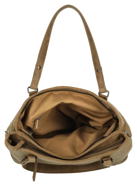 Elegantní dámská taška přes rameno Enrico Benetti Stacey v barvě camel. Vyrobena z odolného PU materiálu s rozměry 35x13x28 cm.