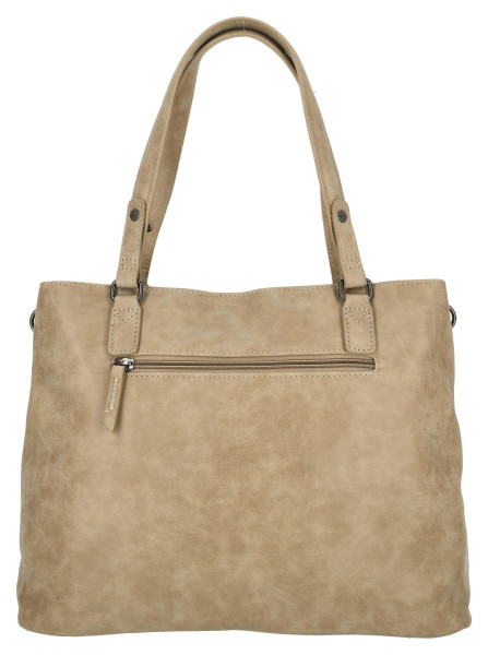 Kabelka je vyrobena z kvalitní a na dotek příjemné imitace kůže, která jí dodává sofistikovaný vzhled a zároveň zaručuje odolnost i snadnou údržbu. Její čistý, minimalistický design v elegantním odstínu taupe se skvěle hodí k jakémukoli outfitu, od pracovního kostýmku po ležérní džíny. Díky velkoryse řešenému vnitřnímu prostoru budete mít vždy dostatek místa na všechny své denní nezbytnosti, od diáře a peněženky až po lahev s vodou či menší nákup.