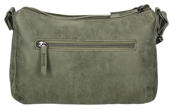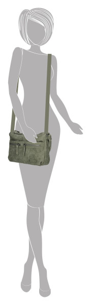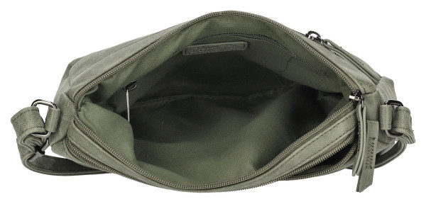 Dámská crossbody kabelka Enrico Benetti Nouméa v olivové barvě. Je vyrobena z PU a má rozměry 26x7x19 cm.