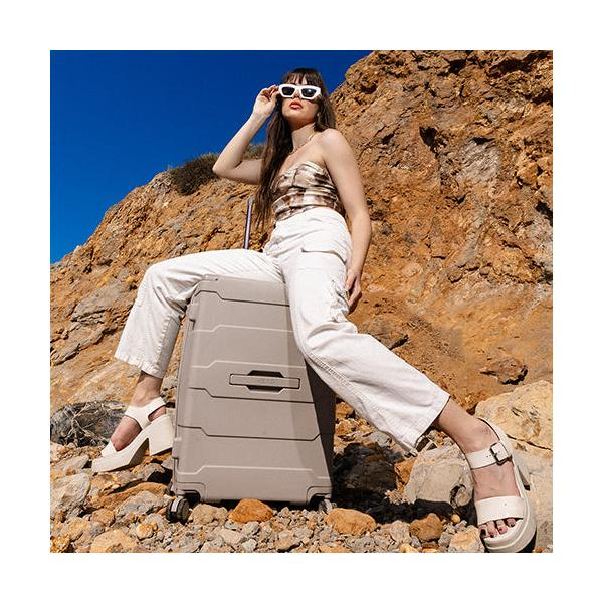 Pevná skořepina tohoto kufru je vyrobena výhradně z recyklovaných PET lahví. Tento inovativní materiál je překvapivě lehký, ale zároveň mimořádně odolný proti nárazům a poškrábání. Elegantní matný povrch a ochranné kovové rohy dodávají zavazadlu nadčasový vzhled a zaručují, že obsah zůstane v bezpečí i při náročné přepravě. Tento velký kufr je ideální pro rodinnou dovolenou nebo delší cesty, kde potřebujete maximum prostoru.